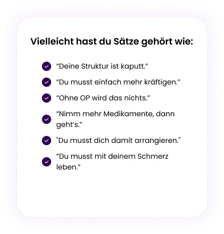 Diagnosen sind Hinweise und schließen dich nicht aus. Entscheidend ist, welcher Schmerztyp bei dir dominant ist – genau dafür ist die Einordnung da.