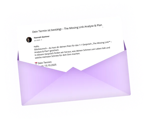 Wenn du daraus einen konkreten Umsetzungsplan willst, ist „The Missing Link – Analyse & Plan“ der nächste Schritt (inkl. Schmerz-Profil, 14-Tage-Plan, PDF & Tracker u.v.m).